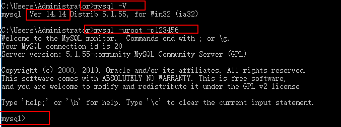 然后在命令提示符中输入mysql-V(V是大写的),出现版本信息说明已经配置好了